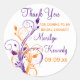 This round purple, orange and white floral bridal shower favour sticker comes in 1.5" and 3" sizes. It matches the bridal shower invitation shown below. If you require another shape or size sticker, please email your request to niteowlstudio@gmail.com.