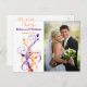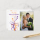 This white, orange and purple floral thank you wedding photo post card has a template area for you to upload your digital photo to. It matches the wedding invitation shown below. If you require any other matching items in this design, please email your request to niteowlstudio@gmail.com.