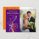 This white, orange and purple floral thank you wedding photo post card has a template area for you to upload your digital photo to. It matches the wedding invitation shown below. If you require any other matching items in this design, please email your request to niteowlstudio@gmail.com.