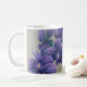 This mug is printed with a hand-drawn purple orchid design.