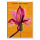 Happy Birthday card from original watercolour painting by Sacha Grossel of a purple watercolour flower design on a bright orange pop art vividly coloured painted art background. This vibrant design was inspired by tropical floral climates and is a botanical meets pop art style. This greeting card can also be customised or changed to include any greeting for any event, such as Congratulations, or thank you etc....