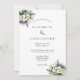 A lovely purple orchid and white calla lilies floral elegant wedding invitation.