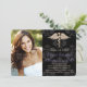 Add your photo or favourite picture to these elegant black and gold caduceus and doctor of osteopathic medicine graduation announcements and invitations with a printed purple stitched ribbon look design on back. Customise it to say whatever you want on the back and front of this d.o. school announcement and invitation. Artwork © Chrissy H. Studios, LLC. All rights Reserved.