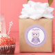 A sweet little purple owl with a pink flower. This cute round sticker is customised with your own 2-lines of text.