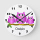 Purple Owls Design Personalised Round Clock