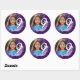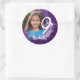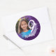 Add a bit of pizzazz to your 9th birthday party with custom photo stickers, featuring a purple spray paint design. Stickers are customisable where you can add your own photo and name.