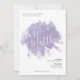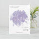 Design features an artistic lavender purple paint swatch. Design is modern and clean with a splash of colour for your special day.