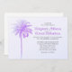 Modern and elegant purple palm tree tropical beach wedding invitations.