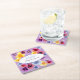 Purple Pansy Boho Floral Bridal Shower Square Paper Coaster