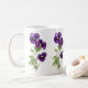 Enjoy your purple pansy coffee mug, designed for holding and enjoying your favourite hot beverages, like coffee, tea or hot chocolate. This mug stands out due to its beautifully adorned exterior, which features the intricate and vibrant colours of pansies with their delicate pretty petals.