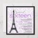 Cute, trendy and modern purple damask & Eiffel tower sweet sixteen party invitations.