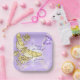 A Digitalbcon Images Design featuring a Purple Peach color theme with a variety of custom images, shapes, patterns, styles and fonts in this one-of-a-kind "Purple Peach Butterfly" Party Paper Plate. This attractive and colorful design adds color and life to that special Birthday Party and makes the perfect token or prize gift for the birthday party attendees. It comes complete with customizable text lettering to suit your special occasion and is adaptable to any special occasion.