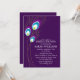Elegant and classic invitation features a beautiful vector illustration of peacock feathers on a deep purple background. Perfect for weddings, bridal showers, birthday parties, sweet sixteen parties and more!