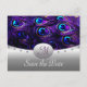 Purple Peacock Wedding Save the Date Cards are schemed in gorgeous shades of purples, blues, aqua and silver. Each card is elegantly decorated with silver jewels with diamond accents. The front features a monogram, that you can customise to the groom-to-be's last initial. The front bottom area is shaded in silver with cursive, fancy lettering. The back features the same silver colouring with jewels, diamond accents and one solitaire larger diamond. Click on the orange customise button below the demo card or use the personalise feature to the right of it to quickly customise the details to your wedding information. If you love this design, scroll down to find matching wedding invitations, RSVP cards, envelope seals and more in this style.