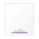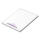 A cute small notepad featuring a purple pen . Personalise it with your own text and your name using the provided template field .