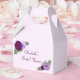 Elegant bridal shower design with flowers in shades of purple with eucalyptus and botanical greenery