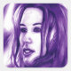 Original artwork created with colour pencil. Close up portrait of a woman, staring wistfully at something in the distance, done in shades of purple. Her hair, which is normally red, frames her uniquely pretty face. This character must be the queen of Venus and probably plays a wicked piano.