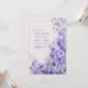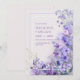 Capture the ethereal essence of a fairytale garden with this exquisite digital botanical illustration. This design features a lush, vertical cascade of vibrant periwinkle and deep purple wildflowers, complemented by delicate white accents and soft green foliage. The blooms are thoughtfully arranged to frame your message, anchored by a crisp white and pale blue rectangular border. The background is a soft, dreamlike lavender gradient that enhances the luminous, high-definition quality of the petals. With its intricate textures and airy, organic movement, this artwork offers a polished and romantic aesthetic for any sophisticated celebration. This botanical layout is a premier choice for a spring or summer garden wedding or a whimsical outdoor ceremony. The purple and blue color story makes it a flawless fit for an elegant bridal shower, a refined engagement party, or an upscale morning garden reception. It pairs beautifully with wedding themes like enchanted forest, modern romantic, or fine-art botanical, and coordinates perfectly with silver, lavender, and crisp white accents.