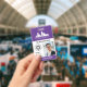 Vertical employee ID with a purple accent colour. Add photo, 2 logos, name, title, ID number and more for a professional looking employee ID badge. A practical and professional employee badge personalised with photo, one larger logo and one smaller logo, along with title, business name, and name.
