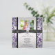 Elegant black and purple damask photo graduation announcement invitations. Customise with your information and photograph. All of the invitation designs you will find on Zazzle are printed graphics on flat paper stock with no raised, or added parts or pieces.