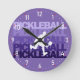 💜Purple Pickleball silhouette Pickleball Round Clock
