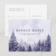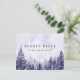 An elegant purple watercolor pine tree forest RSVP card with chic typography. The reverse features your details and a fun guest song request. Designed by Thisisnotme©