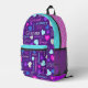 Cute originally designed text name personalised purple, pink, blue, aqua and diamond gemstones girls backpack. This watercolor art gemstones, aqua, sapphire blue, pink topaz and diamond art and text typographical pack bag can also be customised with your own short name, currently reads Gianna. Other colours, names and styles are available, or contact me for name requests. Bright graphic text and gemstones watercolor art personalised backpack, ideal for, school, college, school camp or trips out. Other matching items are available. Original hand diamond gemstone painting and graphics design by Sarah Trett for www.mylittleeden.com