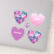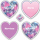 This alcohol ink pattern has soft swirls of purple, pink, blue and black which gives the design a smoky mysterious look. Also reminiscent of tie dye. Set of four hearts and one little diamond. The hearts can be personalised with a name. The little diamond can be customised with initials. If you don't want any text on stickers, just delete it. The small (4" x 4") or medium-sized sheet (6" x 6") are good sizes for laptops or tablets, and water bottles. You may wish to go up a size or two for car decals and luggage labels. To get more ideas for applying your stickers, read "About This Product" below. This sticker pack includes one pink heart, one lavender heart, two Purple, Pink, Black and Blue Alcohol Ink pattern hearts, and one little diamond.