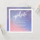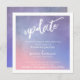 This design features a modern, handwritten script font used to create a graphic depicting the word "update", large and bold. A subtle watercolor overlay was placed at the top, adding texture. Beneath this graphic I've added another image: an ombre gradient with pastel hues of purple, blue and pink. You can rotate this image for different effects, if you so wish. You might also choose to remove the textured watercolor layer for a smoother surface treatment. For an added bold effect, I've placed a thick white border around the edges of the front of the card. Use the template fields to add your personal details and make this unique, modern design your own. Please reach out with any special requests or for customising assistance. // 100 //