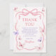 Purple Pink Bow Butterfly Birthday Party Thank You Card