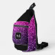 Purple pink faux glitter sparkles Custom Monogram Sling Bag. Cool fashion accessory bag for her. Beautiful girly glamourous shiny glitters sparkles design. Create a unique and personalised bag with a custom touch! Modern monogram with your initial and your name for that extra personal flair. We use Photo of sparkles, not real glitter!