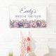 Celebrate the bride-to-be in style with this elegant bridal shower banner featuring romantic watercolor florals in shades of lavender, plum, and blush pink. A lush arrangement of peonies, roses, and greenery beautifully frames the bottom, while the customisable script and serif typography adds a touch of timeless charm. Perfect for photo backdrops, dessert tables, or welcome signage, this banner brings a soft and sophisticated garden feel to any bridal celebration.