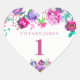 Purple Pink Floral Girl 1st Birthday Love heart Sticker