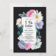 A vibrant black-bordered floral I Do Barbeque engagement party invitation featuring pink and purple flowers, white daisies, and greenery surrounding the text.
