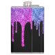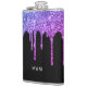 Purple Pink Glitter Drips Sparkle Monogram Hip Flask