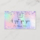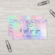 A trendy holographic background with unicorn colours and rainbow colours in pink, purple, mint green. Decorated with confetti. Personalise and add your business logo, name on front