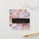 This square business card front and back features a purple and pink marble background. It is designed as a business loyalty punch card. The punch circles are numbered on the back with a message of gratitude. Fill in the template fields with your information for the front and back, REMOVE any text or click customise to select a typeface style, size, and colour you prefer.