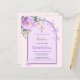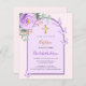 A blush pink background with an arch. Decorated with a purple, violet floral, rose flower, green watercolored eucalyptus greenery and butterflies. Personalise and add a name and details.