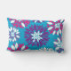 Purple Pink White Flower Art on Blue Lumbar Cushion