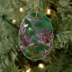 Purple pink white striped orchid like flower lilly ceramic ornament