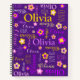 Cute originally designed text name personalised notebook. This purple, pink, white and yellow text typographical notebook can also be customised with your own short name, currently reads Olivia. Other names available or contact me for name requests. Original art and design by Sarah Trett for www.mylittleeden.com
