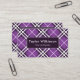 This elegant and modern business card features a purple, black and white plaid background. The text combines modern sans serif fonts for a classy and sophisticated look.