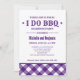 Classic Purple and white design colours with gingham plaid pattern for this rustic and festive I DO BBQ engagement party or couples shower invitation