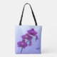 All-Over-Print Purple (Plum to Eggplant) Fantasy Orchids on a Shaded Blue (Pattens Blue to Melrose Blue) Background Custom Shoulder Tote.