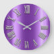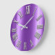 Purple Plum Grey Metal Grey Silver Roman Number Large Clock