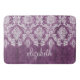 Purple Plum Grunge Damask Pattern with Name Bath Mat