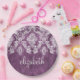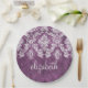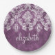 Purple Plum Grunge Damask Pattern with Name Paper Plate