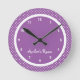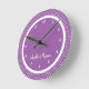 Purple Polka Dot Girl's Bedroom wall clock personalised with their name.