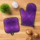 Purple pot holder and oven mitt set with black