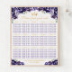 This elegant and glamourous Quinceañera table seating chart features a gold crown and beautiful dark purple floral arrangements with gold confetti. The text combines handwritten script and modern sans serif fonts for a classy and sophisticated look.